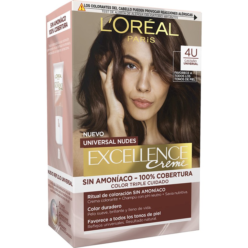 - Excellence Universal Nudes Coloration Triple Care now without Ammonia and with Pro-Keratin, protects the hair before, during and after colouring with 100% grey coverage