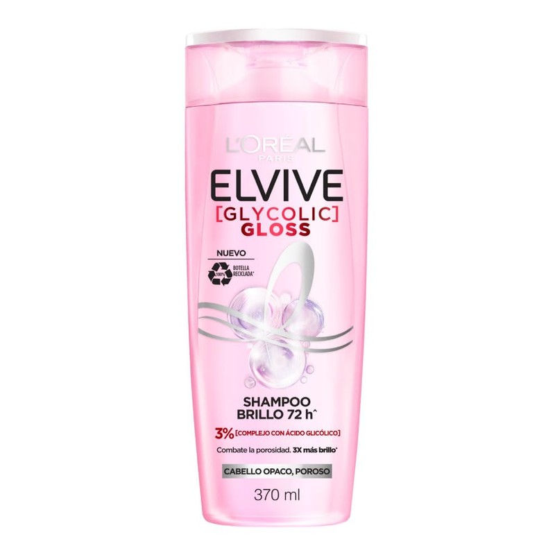 L'Oréal Paris Elvive Champú Glycolic Gloss, con Ácido Glicólico, 370 Ml, 1 unidad