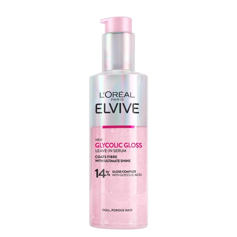 - Contents: 1x L'Oreal Paris Elvive Glycolic Gloss Leave-in Serum, 14% Gloss Complex and Glycolic Acid, Anti-Frizz, Coats Fibres for Ultimate Shine, Smoothes Hair, Ideal for Dull Hair, Volume: 150ml