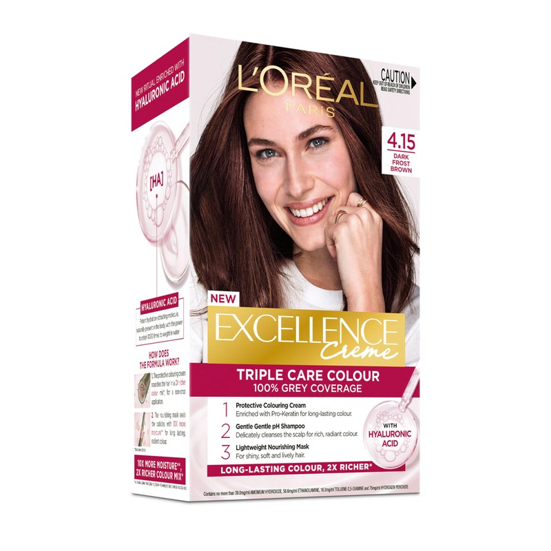 L'Oréal Paris Excellence Creme, 4.15 Dark Frosted Brown (100 Percent Grey Coverage)