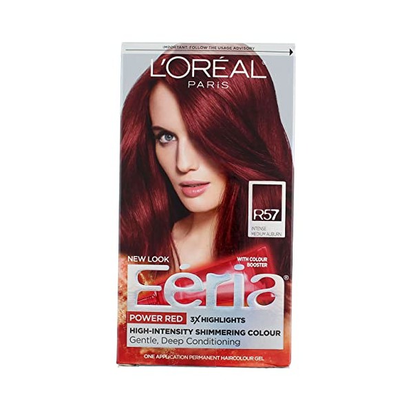 L'Oreal Paris Feria Permanent Haircolor, R57 Intense Medium Auburn 1 Count (Pack of 4)