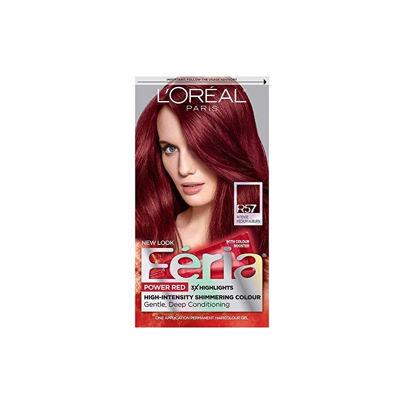 L'Oreal Paris Feria Permanent Haircolor in R57 Intense Medium Auburn delivers a vibrant, multidimensional finish that effectively covers grays while enhancing natural tones. This advanced formula provides long-lasting color and shine, while conditioning the hair for a smooth, healthy look. Packaged in a convenient pack of 9, it offers a reliable supply for regular touch-ups and maintenance.