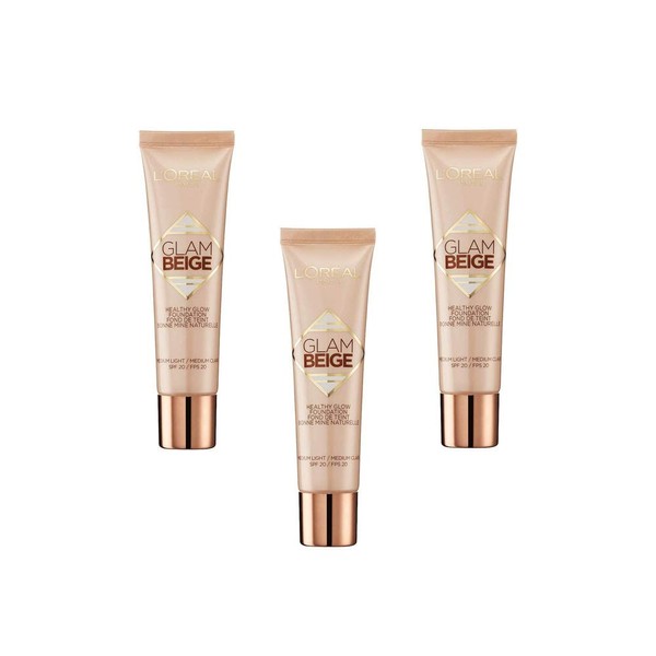 L'OREAL Paris Glam Glow Beige Healthy Glow Foundation (3 x 30 ml) SPF 20 / SPF 20 (Medium Light/Medium Clair) Pack of 3