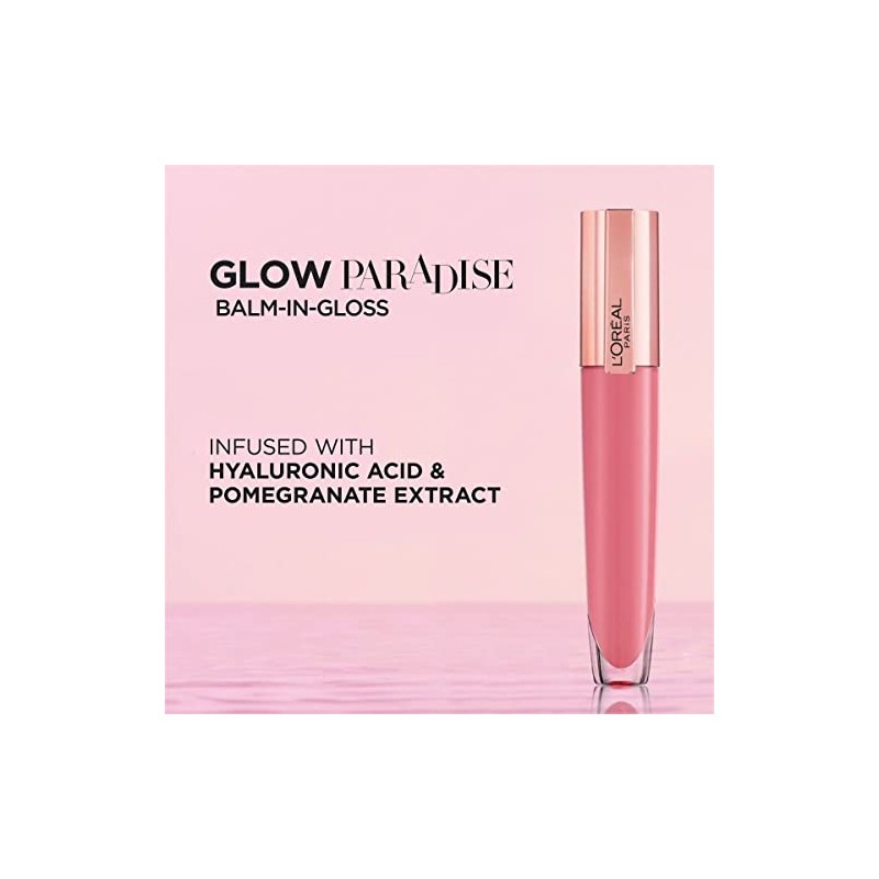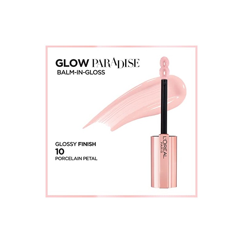 L'Oreal Paris Glow Paradise Hydrating Lip Balm-in-Gloss with Pomegranate Extract & Hyaluronic Acid, Porcelain Petal, 0.23 fl oz