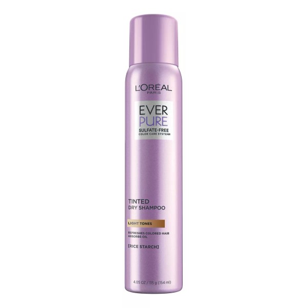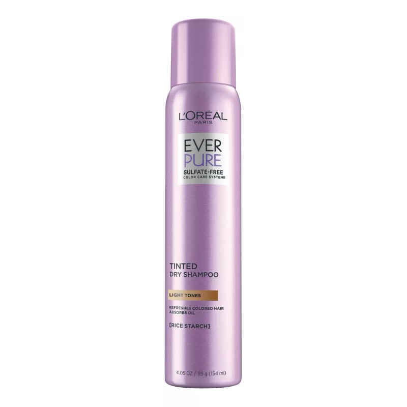 L'Oreal Paris EverPure Tinted Dry Shampoo for Light Tones limpia y refresca instantáneamente todo el cabello rubio y rojo sin apelmazar. Especialmente formulado con pigmentos puros y almidón de arroz, mantiene el brillo del cabello rubio mientras absorbe el exceso de grasa, sudor y olor. Con una fragancia de larga duración, con notas de flor de almendro fresca y almizcle cremoso. Nuestro más puro respeto por tu cabello: 100 % sin sulfatos, sin parabenos, sin gluten y vegano. Validado por coloristas de cabello.