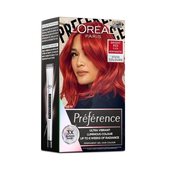 L'Oréal Paris Préférence Vivids Permanent Hair Colour, 8.624 Bright Red (Pack of 3)