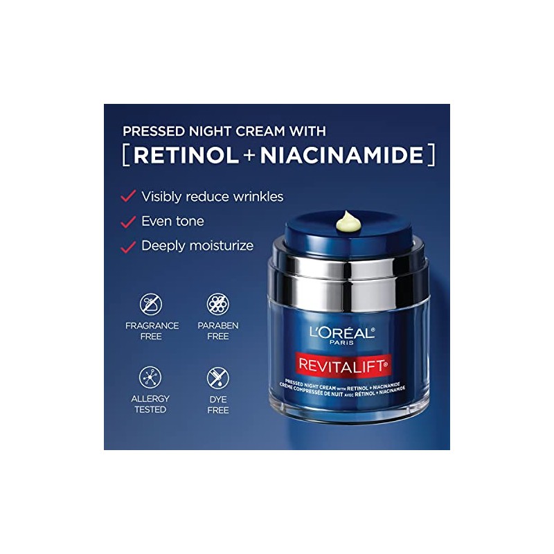 L'Oreal Paris - L'Oreal Paris Revitalift Pressed Night Cream with Retinol, Niacinamide, Visibly Reduce Wrinkles, Hydrate for Face, Under Eye, Neck, Chest, Dermatologist tested + Hyaluronic Acid Serum Sample, 1 kit, 2. ✅ Diseño innovador que supera las expectativas. Materiales de alta gama y acabados premium. ⏰ Oferta por tiempo limitado. Ideal para quienes buscan lo mejor en calidad y estilo. Producto auténtico con satisfacción total asegurada. ¡No te quedes sin el tuyo y aprovecha esta oportunidad única!