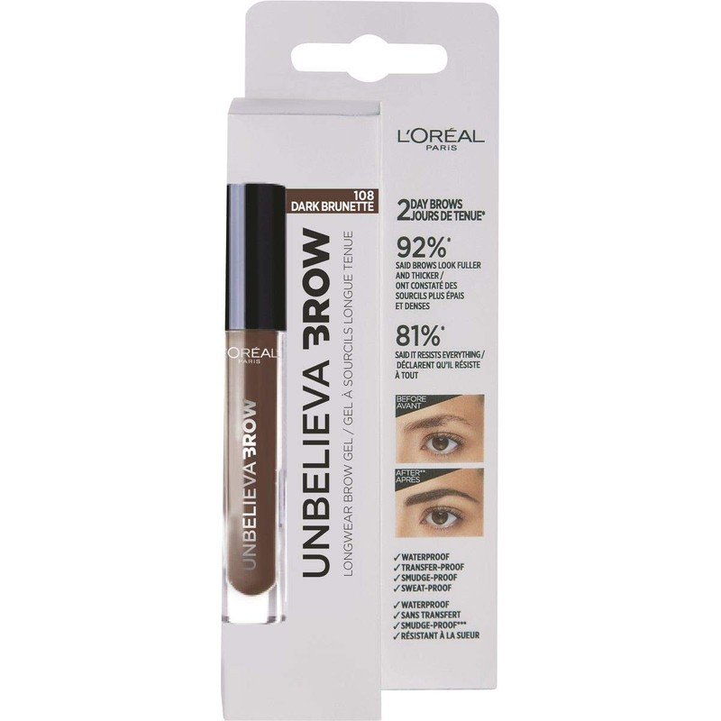 - Box contents: 1x L'Oréal Paris Unbelieva Brow Eyebrow Paint with Brush, Brush and Sponge Applicator, Colour: No. 108 - Dark Brunette, Capacity: 3.4 ml