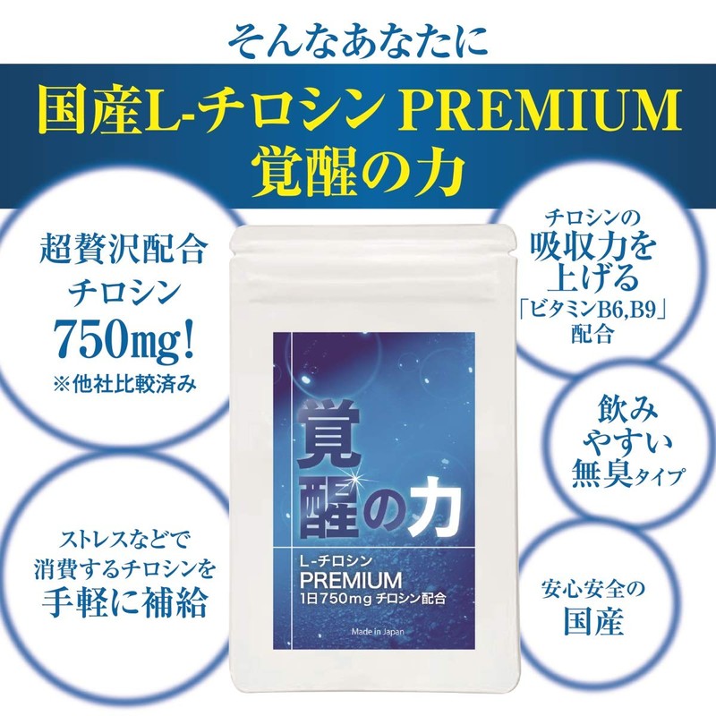 - 業界最多のチロシン配合量 国産L-チロシンサプリメント 覚醒の力。1粒あたりチロシン250mg配合!1日の摂取量は3粒で750mg 1袋あたり22500mgのチロシンを摂取できます。