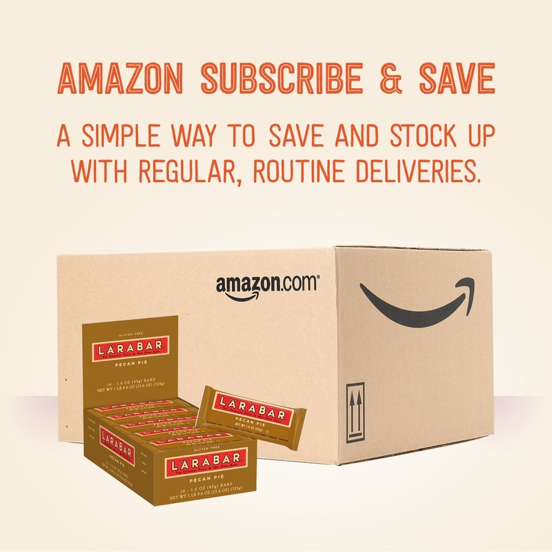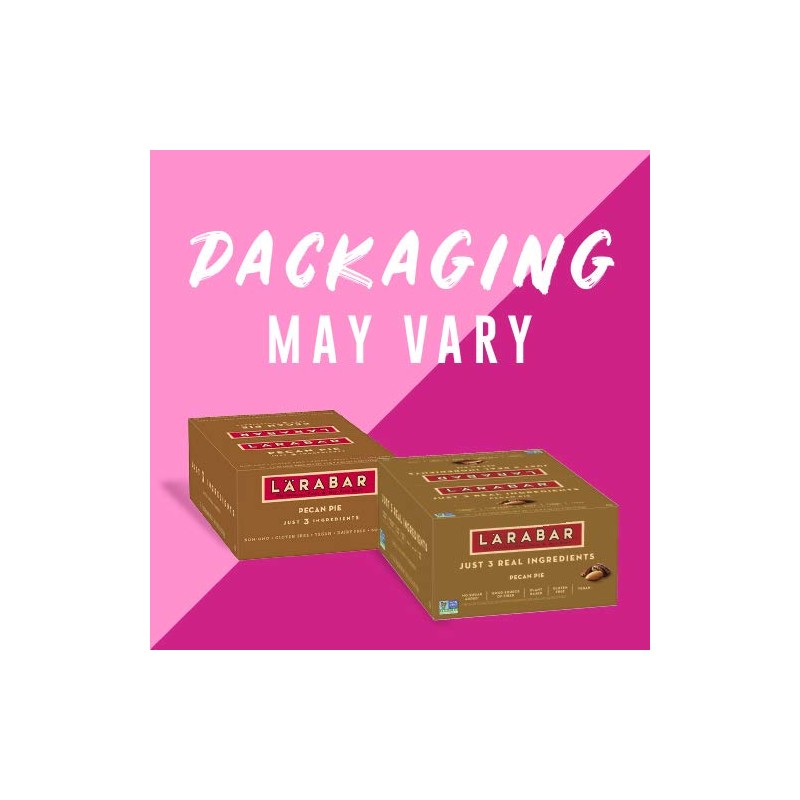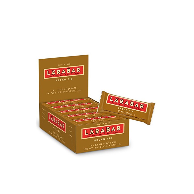 Product DescriptionEat clean with 100% real ingredients. Larabar makes simple snacks you can feel good about eating. With our simple blend of fruits, nuts & spices, clean eating just got a whole lot easier. Whether its a breakfast bar or afternoon snack, this bar is an easy and delicious option that will lift your vitality and provide energy with every bite. Larabar Pecan Pie is made from just 3 simple ingredients: dates, pecans and almonds and is Vegan, Gluten Free, Dairy Free, Kosher, Soy Free, Non-GMO, and a Good Source of Fiber. We're Raising ? Bar to real C and that means avoiding artificial sweeteners in our products and sticking with the real thing for a simply sweet taste you can trust. Simple. Pure. Delicious. Enjoy the energy!Amazon.comAt L?RABAR, we believe that the foundation of a sound mind, body and spirit is derived from what you eat. And what you eat is most delicious and satisfying when it's in a whole, natural state.It's true, the traditional version is indulgent, but our Pecan Pie likes to break the rules. Made up of only 3 ingredients, this food is unafraid to be delicious and wholesome at the same time. It also contains a 1/2 serving of fruit. Rebellious? Definitely. Made with dates, pecans, and almondsPecan Pie is also: Gluten Free Non-GMO Kosher Vegan Dairy Free Soy Free The OriginalFruit & Nut Bar Pure OrganicChocolate Food Bar The Sweet & SaltyFruit & Nut BarFrom the ManufacturerLarabar Snack Bar, Pecan Pie