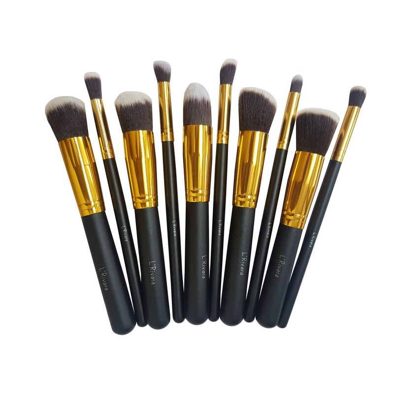 L'Rivara 10 Piece Makeup Brush Set Model LR-105 (Black + Gold)