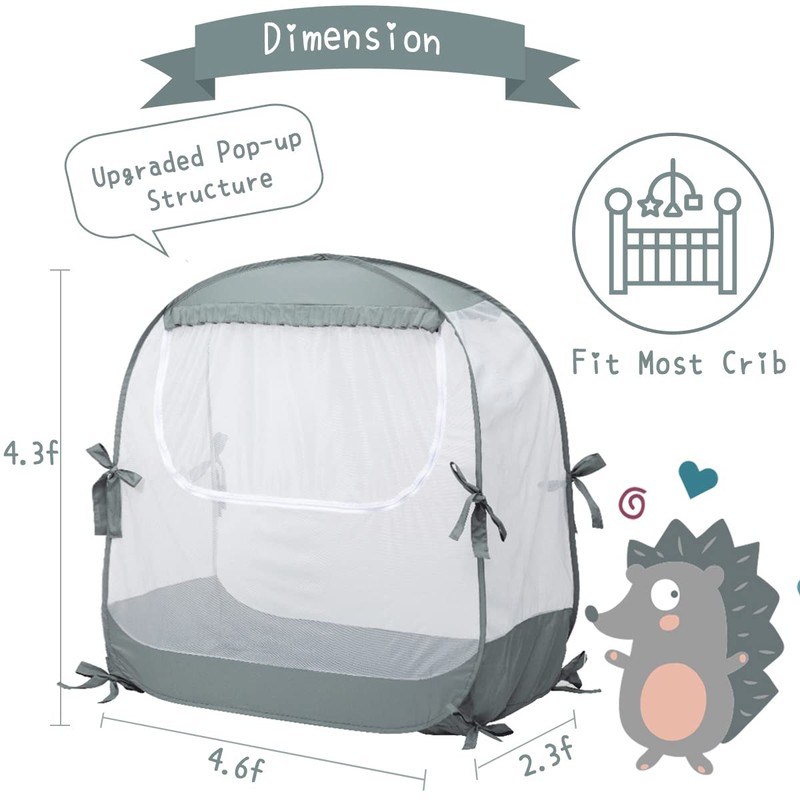 - Easy to install: The crib safety tent is designed with an automatic pop-up structure! You can just open the package and put the tent on the crib.Measures 55.2 "x 51.6" x 27.6 ", suitable for most standard-size cribs