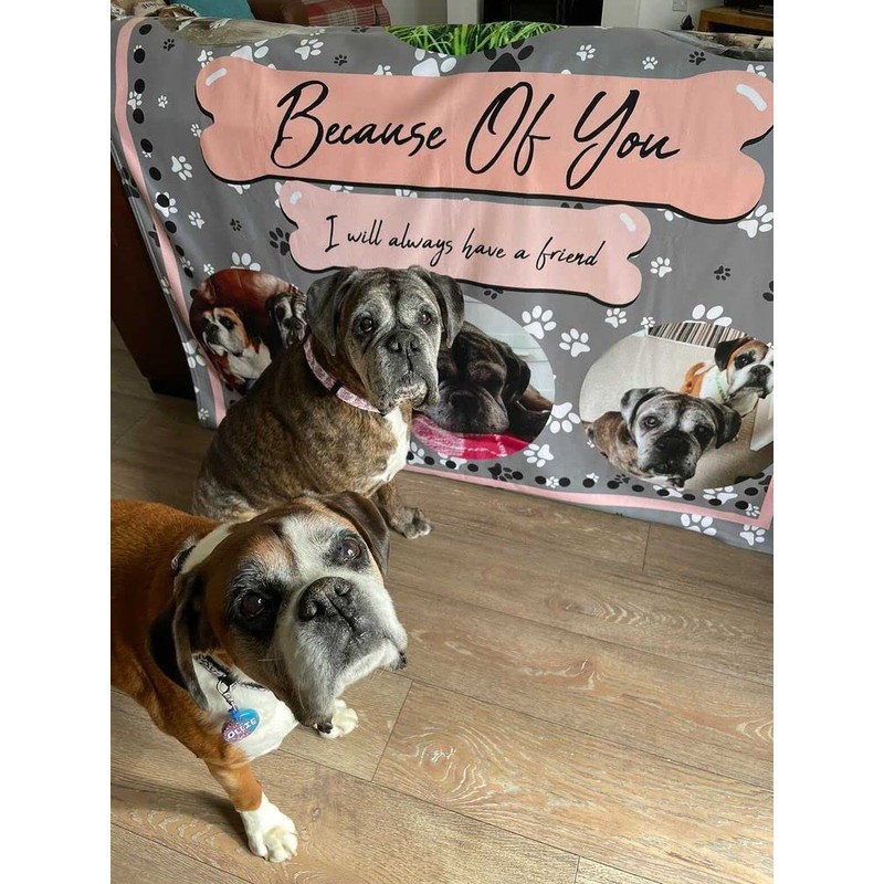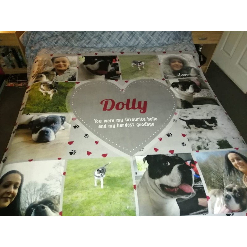 L&S PRINTS Extra Large Personalised Dog Photo Blanket | Pet Paw Print Design Custom Fleece Throw | Memorable Pet Collage Blanket | 150cm x 150cm King Size Blanket | Made In England