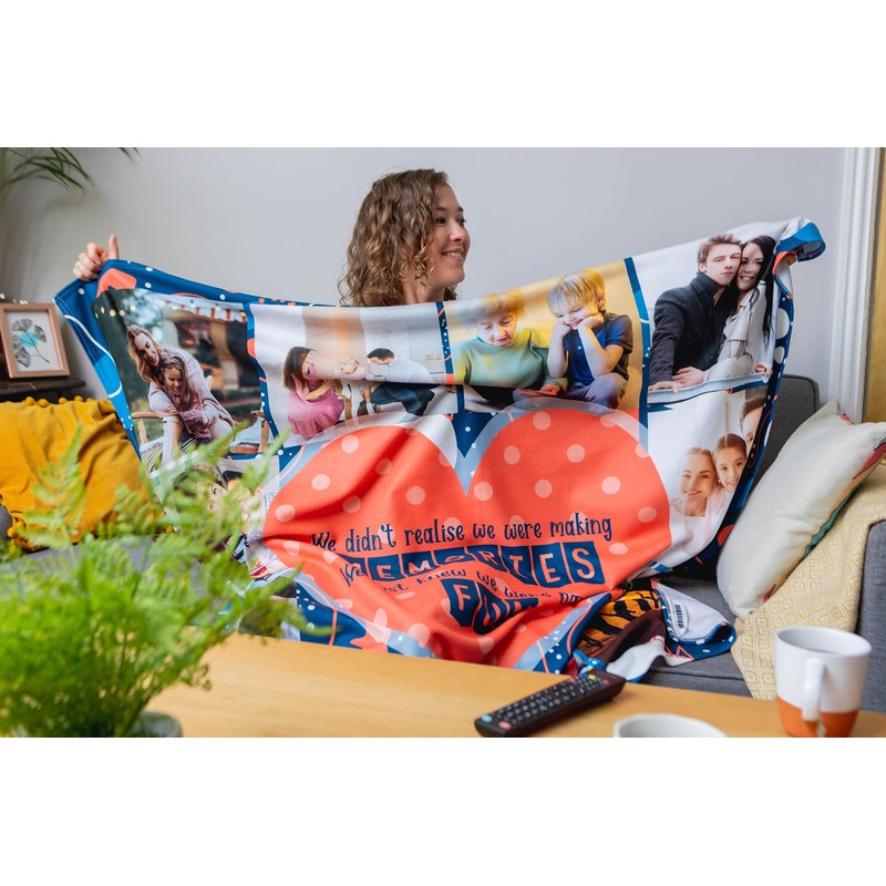- Select ‘Customise Now’ to personalise the blanket. Images will be uploaded one at a time. Images can be positioned/resized before uploading the next image. When you have clicked continue after uploading your images you will be unable to see the photos that you have previously added. Please rest assured that they have been uploaded correctly. Once you have