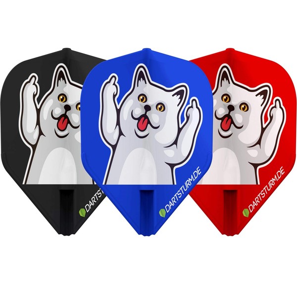 The EZ flights from L-Style are a great alternative to flight systems such as Robson, as you can simply put the finished flight on the shaft and get started right away. There is nothing to build together and you can get started right away. The robust material can withstand a lot and the flight characteristics convince all the way. The L-Style Champagne Flights EZ in "F**k You Cat" design are only available in L1EZ standard shape but in 4 different colour variations. The cool cat in comic style is available both as a mixed set, as well as in pure colours. In the mixed set of the F**k You Cat Flights there is a flight in blue, red and black. These stylish "F**k You Cat" dart flights from L-Style are exclusively available from DartSturm.de.