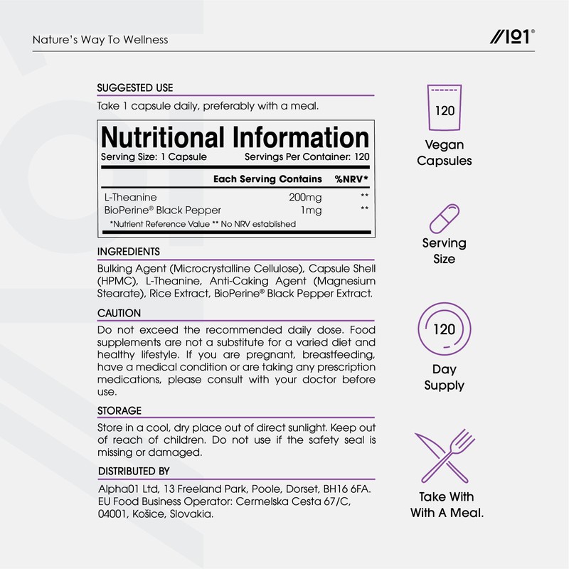 - ✔ POTENT AMINO ACID: The focus of much scientific research, L-Theanine is a unique amino acid that can be found in particular plant and fungal species. This vegan-friendly formula contains an intelligent dose of 200mg L-Theanine in every single capsule.