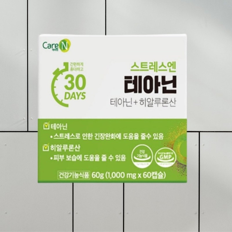 L-Theanine Theanine Nutrients Health Functional Food Stress Relief Examiner Tension Relief Skin Moisturizing Hyaluronic Acid CareN / L테아닌 테아닌영양제 건강기능식품 스트레스완화 수험생 긴장완화 피부보습 히알루론산 케어엔