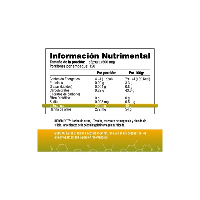 - Dosis óptima: 200mg de L-Teanina en cada cápsula, una dosis segura y eficiente.