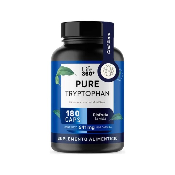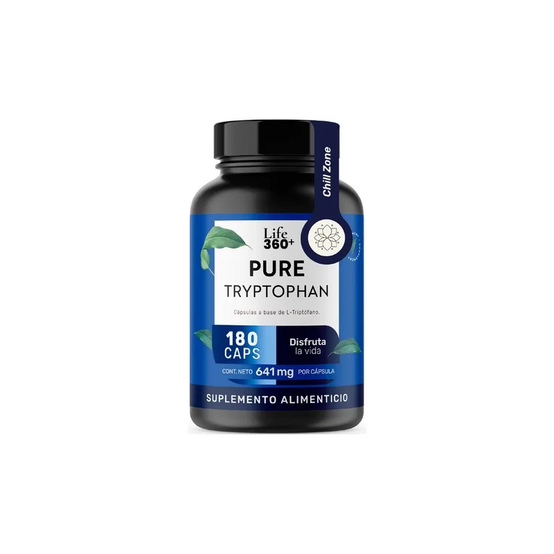PRESENTACIÓN: Life 360+ PURE TRYPTOPHAN es un suplemento alimenticio en cápsulas a base de L-Triptófano que se encuentra disponible en presentación de envase de tarro de plástico con un contenido de 180 cápsulas.