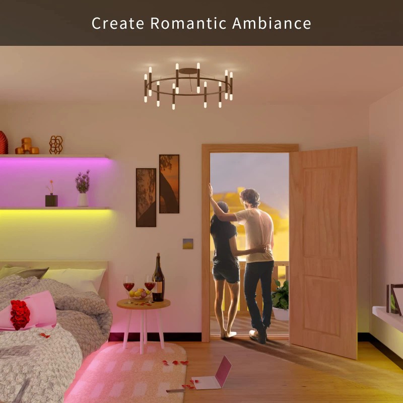 You can control the Led strip lights with 24key IR remote control (remote range: 5m). Easily turn on/off strip lights, select colors, change modes(flash, fade, strobe, smooth) and adjust brightness. Install the 8ft led strip lights around the ceiling, under the cabinets, behind the bed frame and make your whole home come alive.
