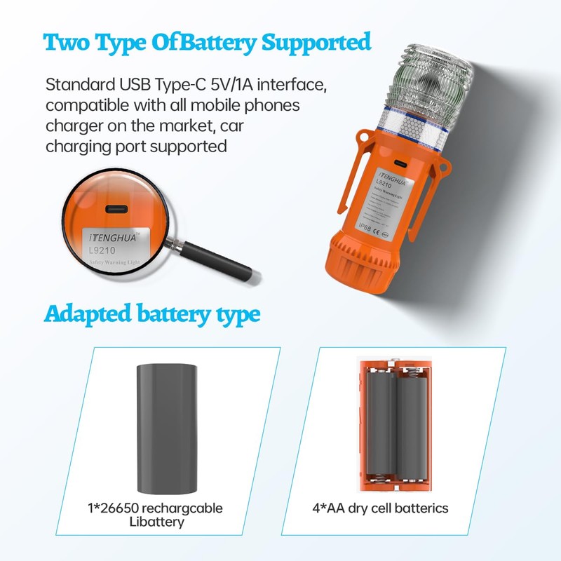 L9100G Warning Light,Strobe Lights for Trucks with Magnetic Cap, IP68 Waterproofed Emergency Lights for Vehicles, Red&Blue Beacon Lights with Li-Battery, Flashing Lights with 1W High Light
