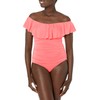 La Blanca Women's Island Goddess Off Shoulder Ruffle One Piece Swimsuit, Hot Coral, 12