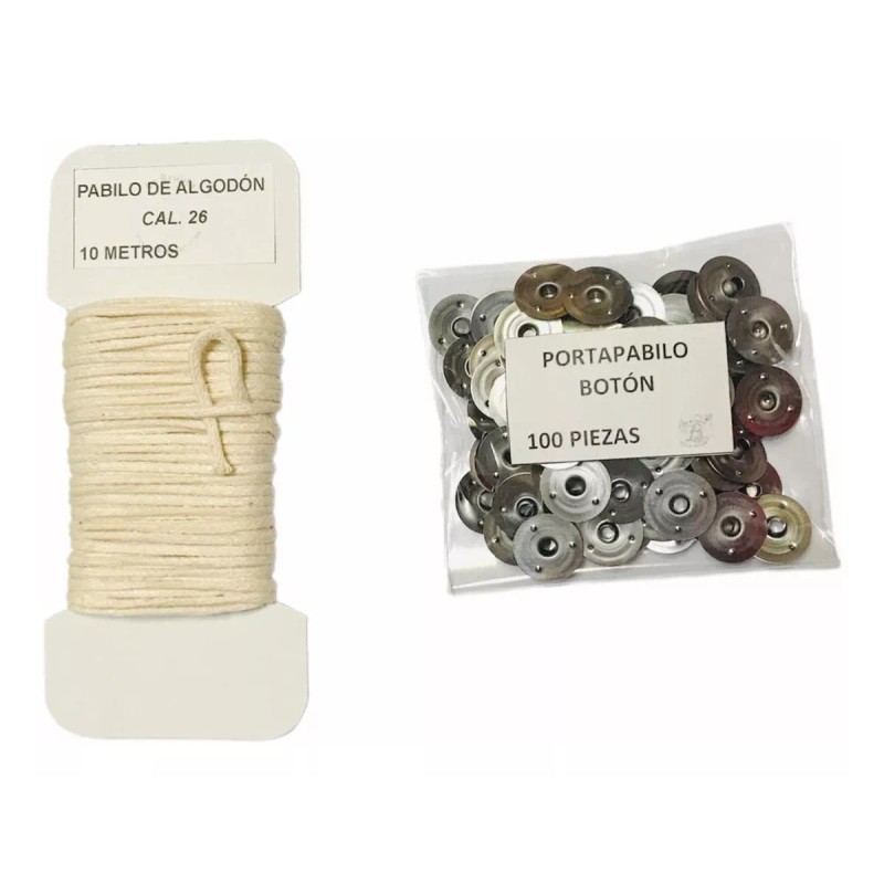 Esta Mecha es de Calibre 26 de algodón contiene 10 metros y 100 portapabilos de botón.