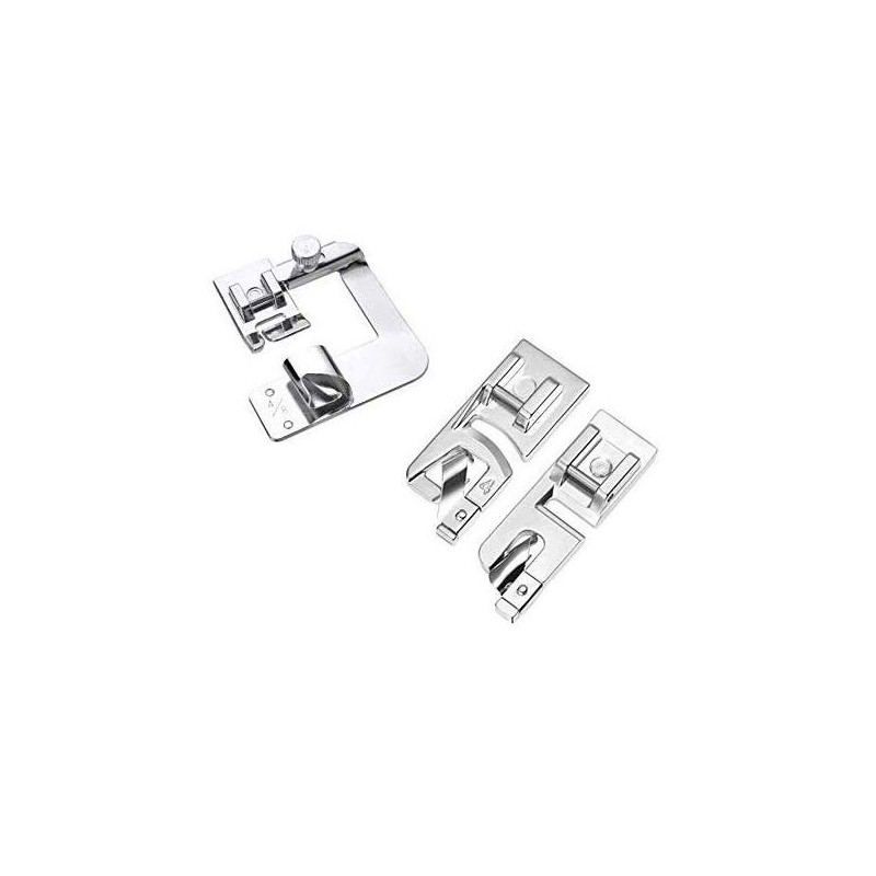 - ✅ PACKAGE: This set contains 3 special snap-on presser feet for hems of different sizes. 2 mm, 4 mm and 4/8 inch (corresponds to approx. 12.7mm)
