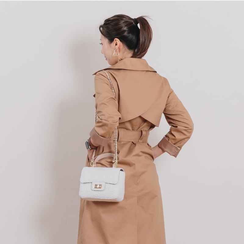 La Closet Horn 99-3011 2-Way Tweed Bag, Genuine Leather Handle, Chain, Women's, Shoulder Bag, Handbag, Imai Bag, white