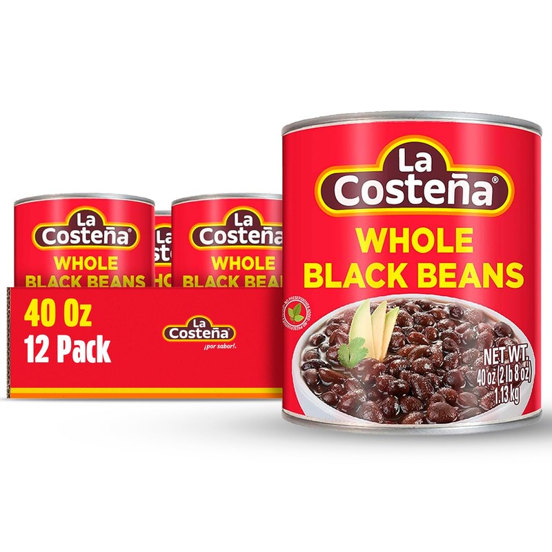 La Costeña Whole Black Beans - Ready-to-Eat Canned Black Beans for Mexican Food, Vegetarian Chili Ingredients, Frijoles Negros, Hummus, Dips, Burgers & Burritos - 40 oz, 12 Pack Bulk Canned Food