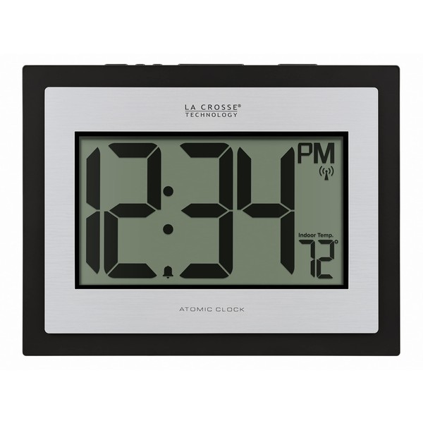La Crosse Technology 513-1422S Atomic Digital Silver Clock with Indoor Temperature