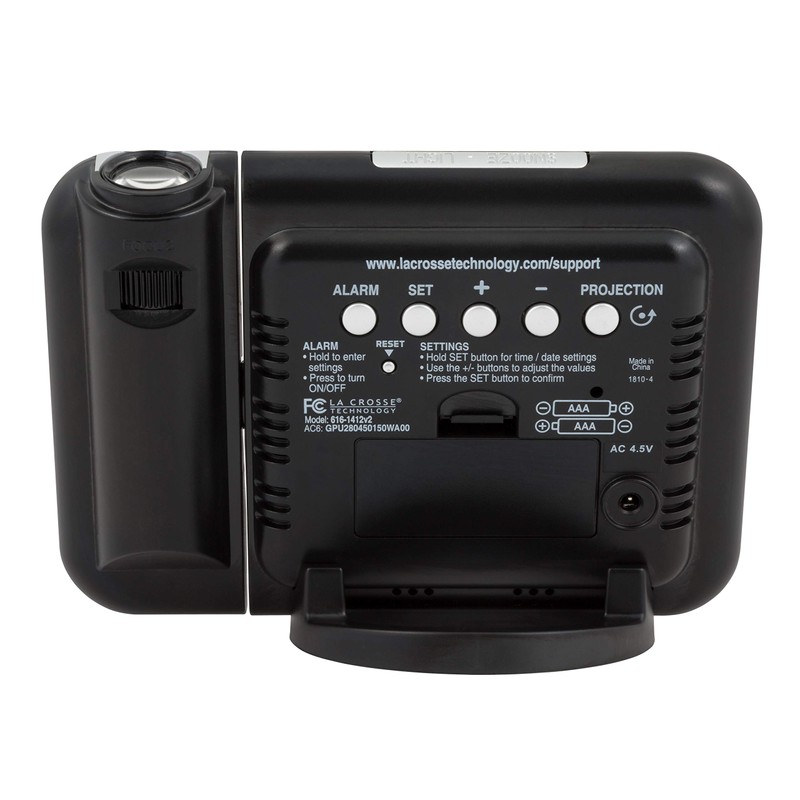 La Crosse Technology 616-1412 Projection Alarm Clock with Indoor Temperature, 5.90" L x 2.30" W x 4.40" H, Black