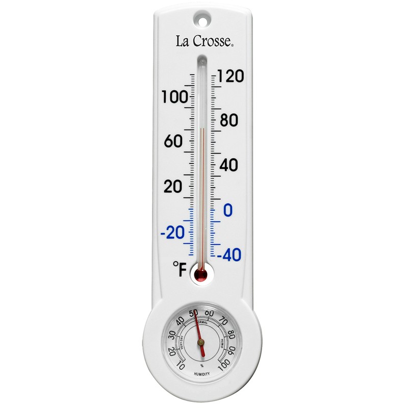 La Crosse Technology T83745 9 Inch Traditional Vertical Thermometer and Hygrometer, White