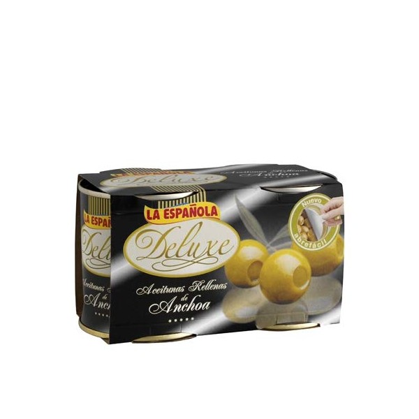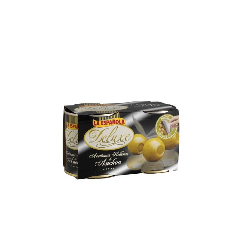 - La Española. Aceitunas verdes rellenas de anchoa Deluxe