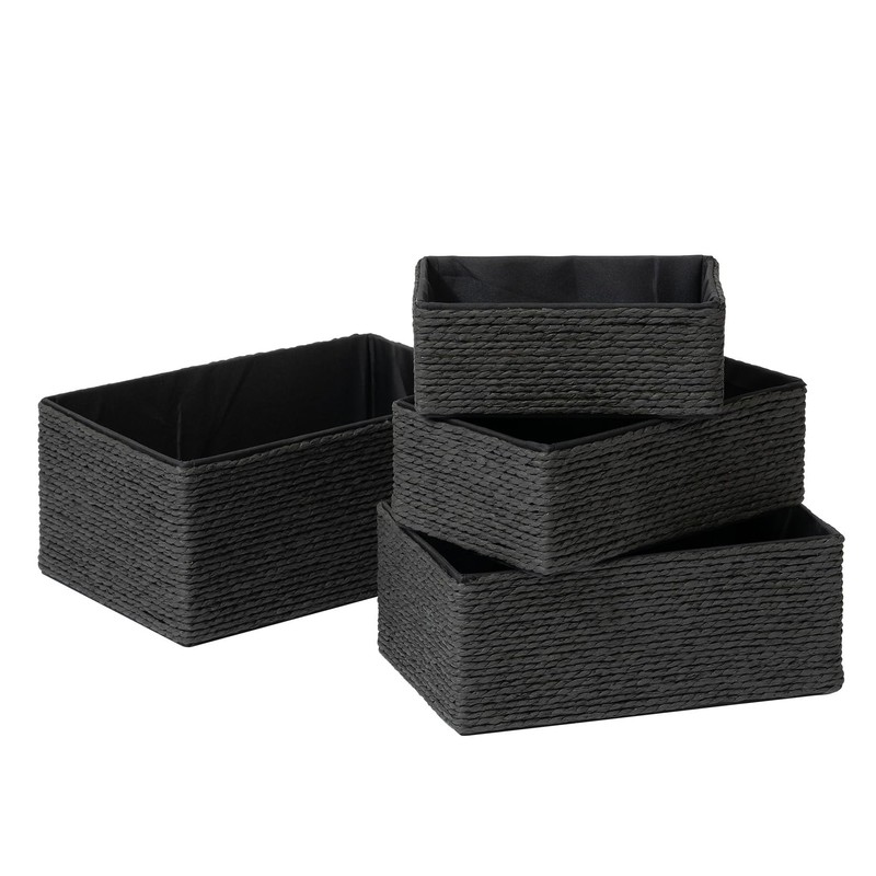 LA JOLIE MUSE Storage Baskets for Organizing Set 4 - Sturdy Woven Basket Paper Decorative Baskets, Stackable Storage Boxes for Makeup Closet Bathroom Bedroom Shelf (Black)