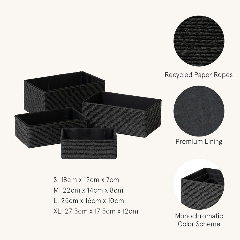 LA JOLIE MUSE Storage Baskets for Organizing Set 4 - Sturdy Woven Basket Paper Decorative Baskets, Stackable Storage Boxes for Makeup Closet Bathroom Bedroom Shelf (Black)