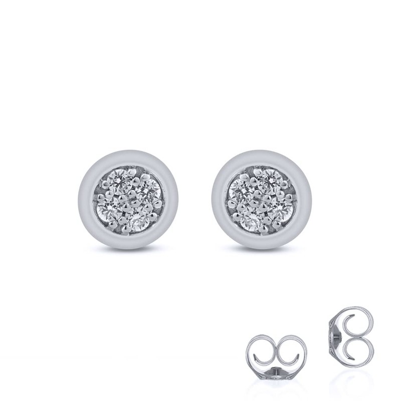 - These Dainty Diamond Earrings Showcasing a Cluster of Sparkling Lab Diamonds in a High Polished Silver Frame, Create a Beautiful Illusion of a Single Large Diamond Stud But Without the Hefty Price Tag