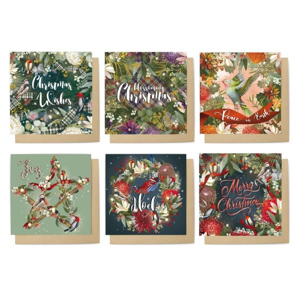 6 designed folded cards per set – includes envelopes in an illustrated cardboard box. Each card: 14cm x 14cm.