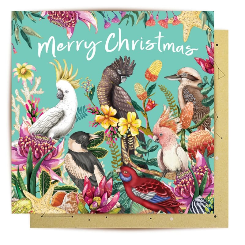 14 x 14 cm greeting card with illustrations inside and out. Includes a kraft envelope. Made in Australia by La La Land.