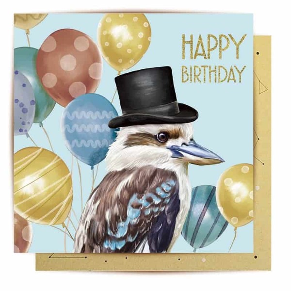 A handsome kookaburra fit for a more masculine birthday! Illustrated greeting card by Murilo Manzini.