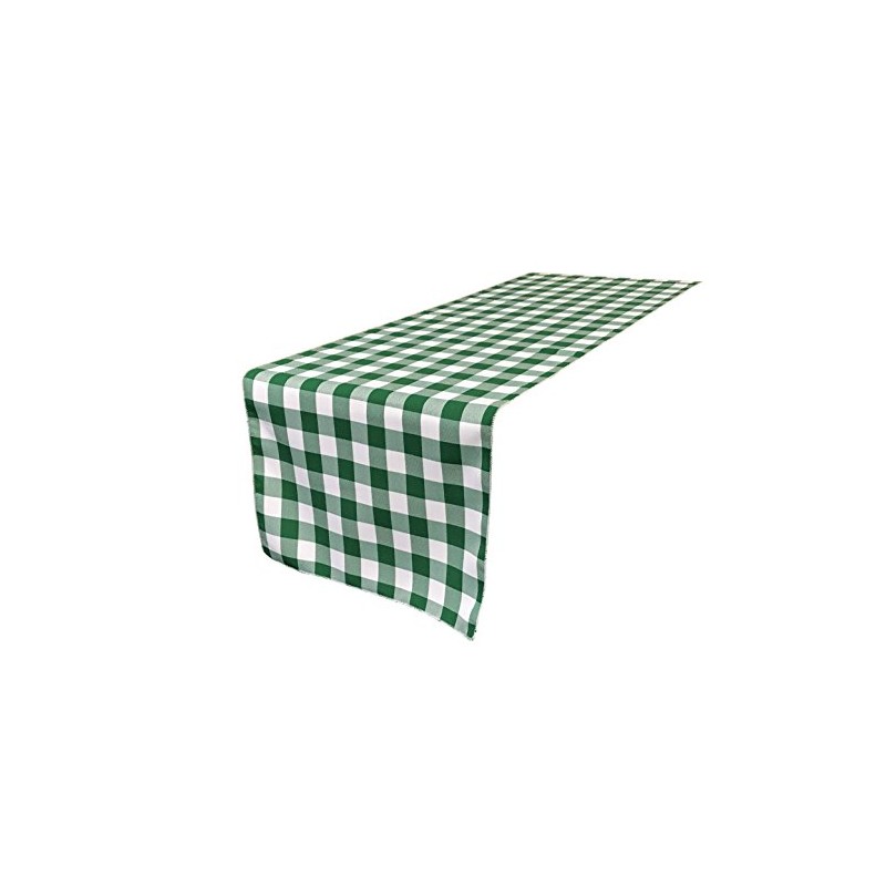 LA Linen Poly Table Runner, 14 by 108-Inch Checkered Gingham Hunter Green/White