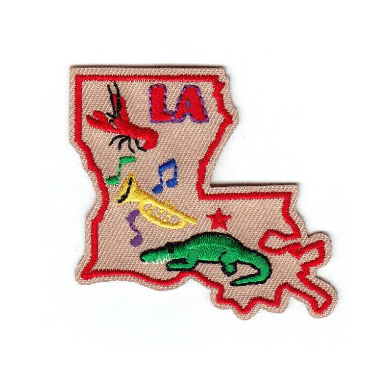 LA LOUISIANA STATE SHAPE Iron On Patch Mardi Gras Music