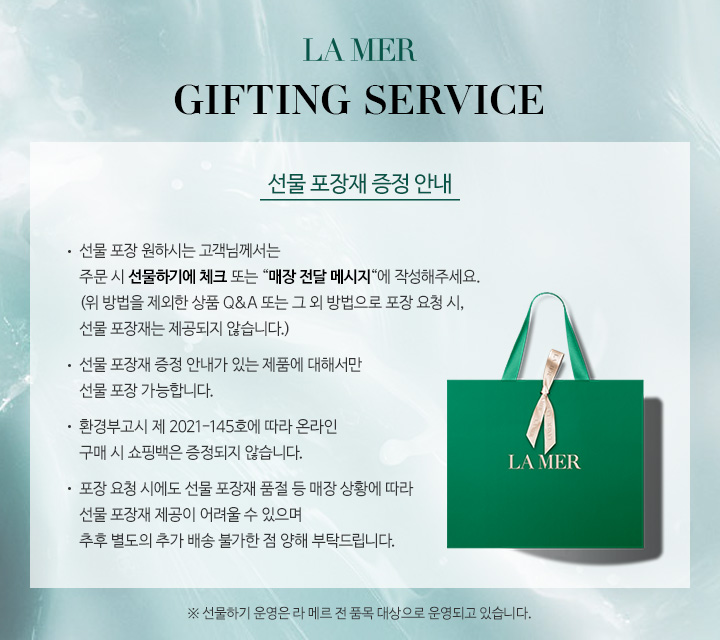 - Consumer consultation phone number: La Mer Customer Service Center //02-6971-3215