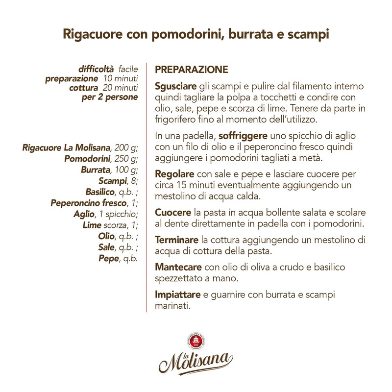 - VERSATILE AND DELICIOUS: This pasta is incredibly versatile and pairs well with a variety of sauces, from simple tomato-based sauces to creamy and cheesy creations. Let your culinary creativity shine with La Molisana Rigacuore N.1000.