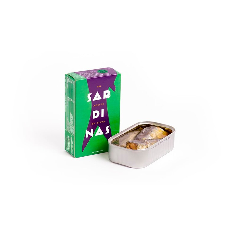 - Sardinas en Aceite de Oliva. 3/5 sardinas por lata.
