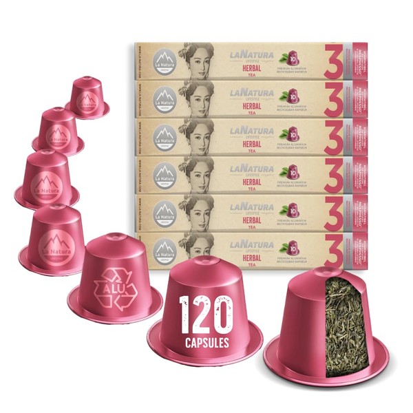 La Natura Lifestyle 120 x Herbal Tea in Aluminium Capsules, Compatible with Nespresso®³ Capsule Machines, 100% Recyclable, Masterful Combination of Selected Herbs, Delicate Flowers and Aromatic