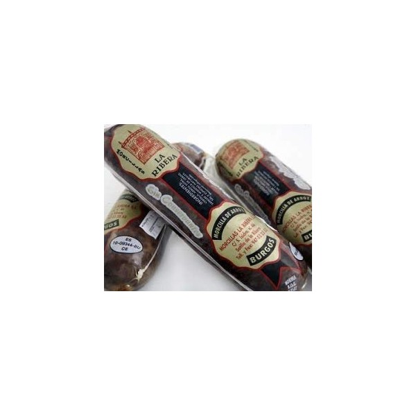 Product descriptionWe are delighted to offer this gourmet speciality from one of the highest cities in Spain, Burgos in Castilla y Leon. It is a black pudding made with rice and delicately flavoured with cumin. Slice into chunky coins and fry lightly - serve as a tapa on toast or with fried eggs, or as part of a cooked breakfast.IngredientsOnion, rice, pig blood, lard, salt and spices.Manufacturer Contact InformationMorcilla la Ribera, Spain