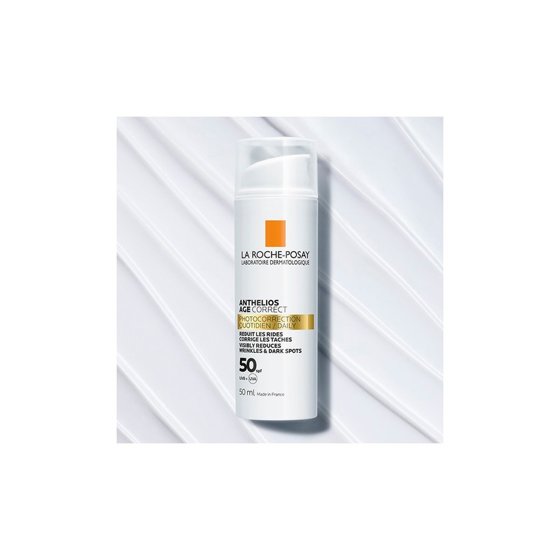 La Roche-Posay Anthelios Age Correct Daily Care SPF 50 50ml is a facial care that helps protect the skin and correct the signs of aging induced by daily UV exposure, thanks to photocorrection. It acts on the reduction of wrinkles and the correction of dark spots.