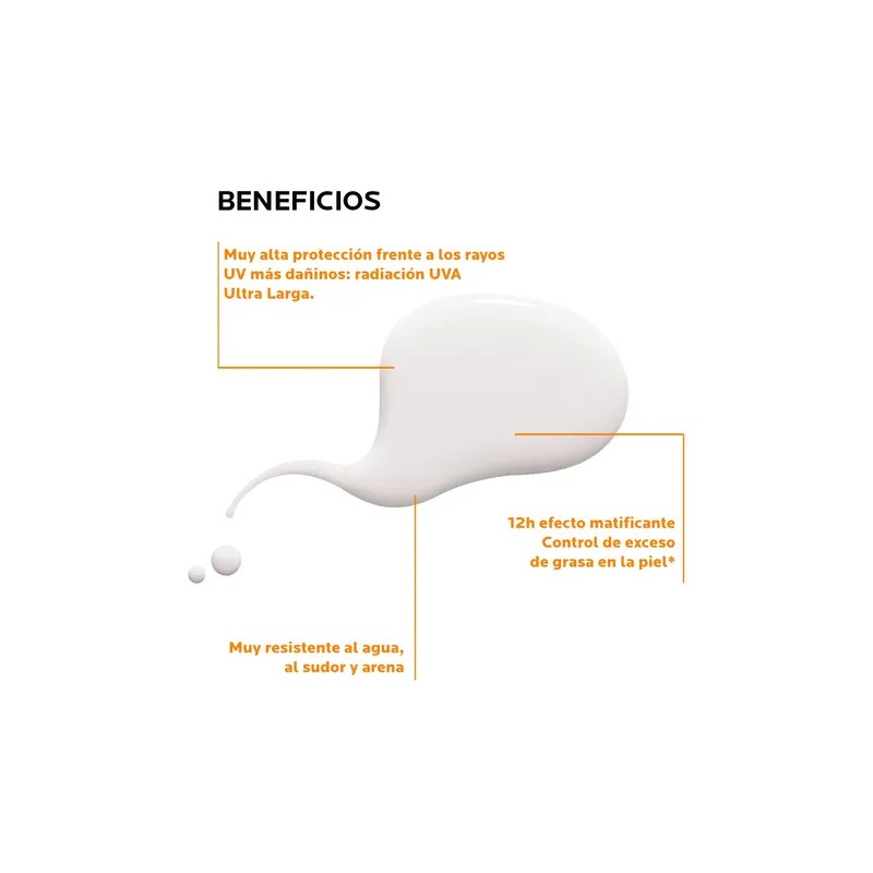 • Formulado con FPS 50+ y el filtro patentado Mexoryl 400, que protege contra los rayos UV más dañinos*, previniendo el daño celular y el envejecimiento prematuro de la piel.
