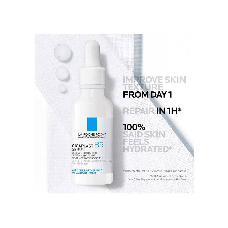 La Roche Posay Cicaplast B5 Serum is a repairing & hydrating serum to be used daily on the face, clinically proven to hydrate and help the skin barrier repair in 1 hour.*